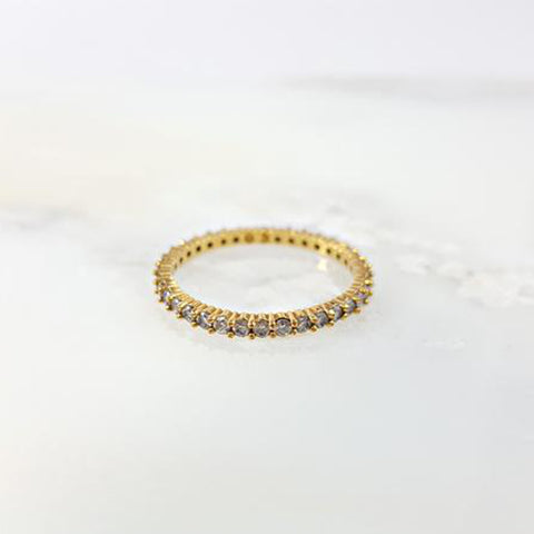 Rose gold plated, this popular ring offers a classic yet fashionable look and follows the petite jewelry trend. Embellished with sparkling chatons,...